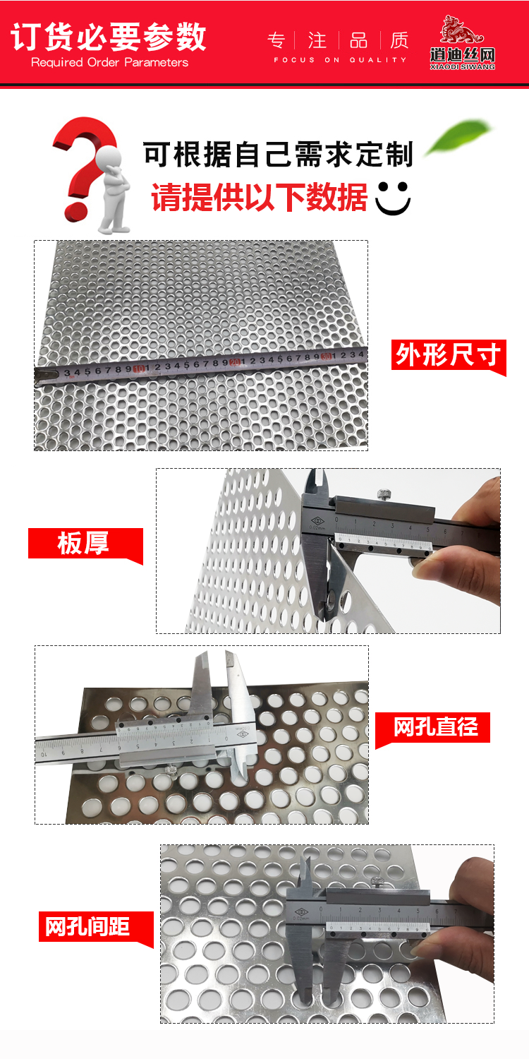 - 網孔間距:孔間距可以定製,間距太小和廠家溝通因為有生產技術難度