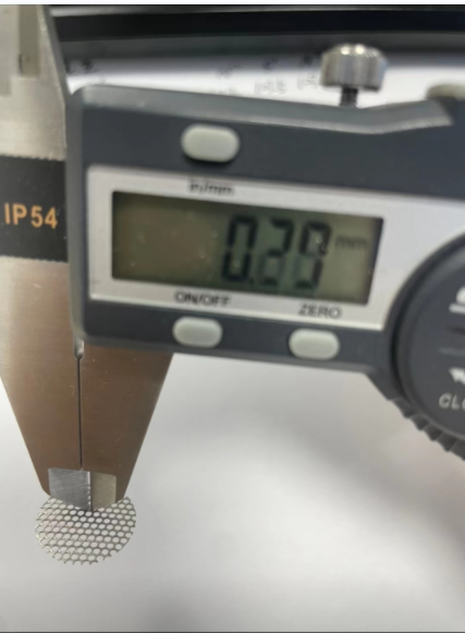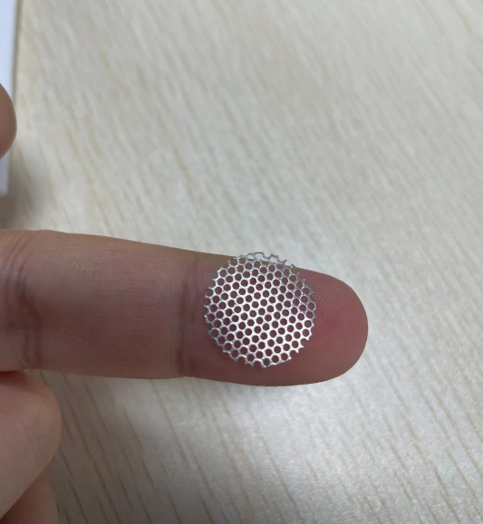 圖片上是不鏽鋼材質板厚1mm孔直徑0.29mm孔間距0.05mm是一款用在電子設備上的防護片