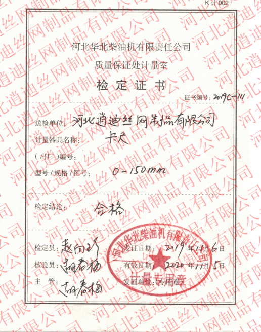 由質量保證處計量室鑒定,出的鑒定證書,為了規整計量尺寸由於市場計量器材尺寸又差距造成客戶尺寸不對原因我公司做了測量器材鑒定